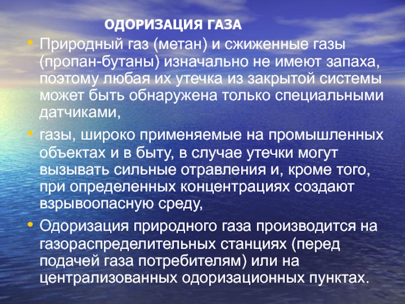 Слайд 26ОДОРИЗАЦИЯ ГАЗА