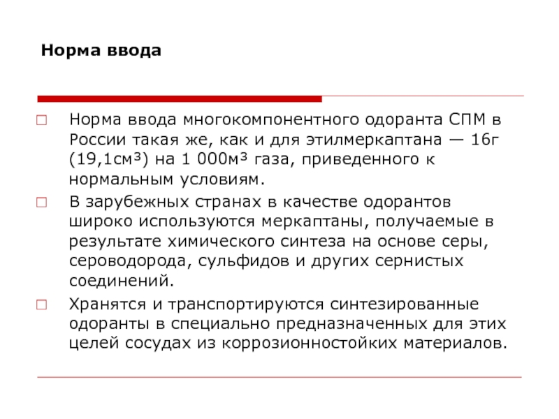 Норма ввода многокомпонентного одоранта СПМ в России такая же,