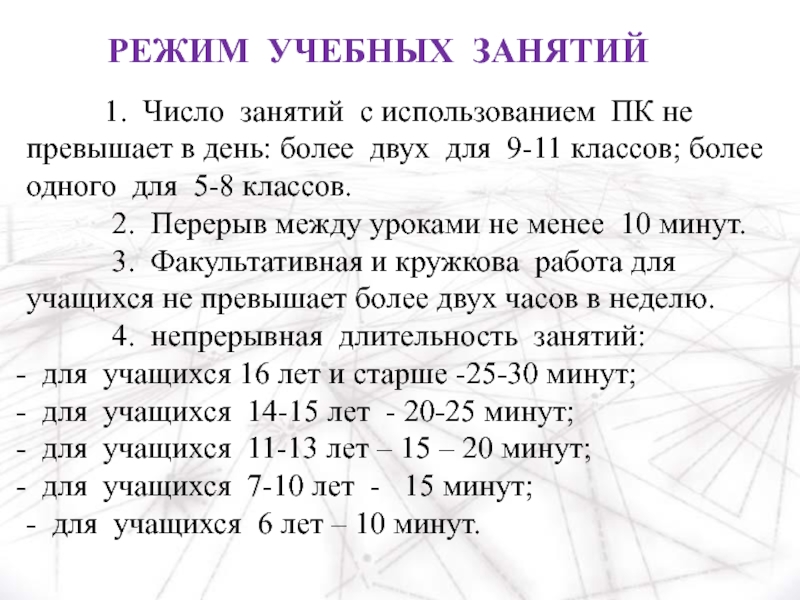 Слайд 19РЕЖИМ УЧЕБНЫХ ЗАНЯТИЙ