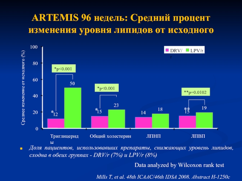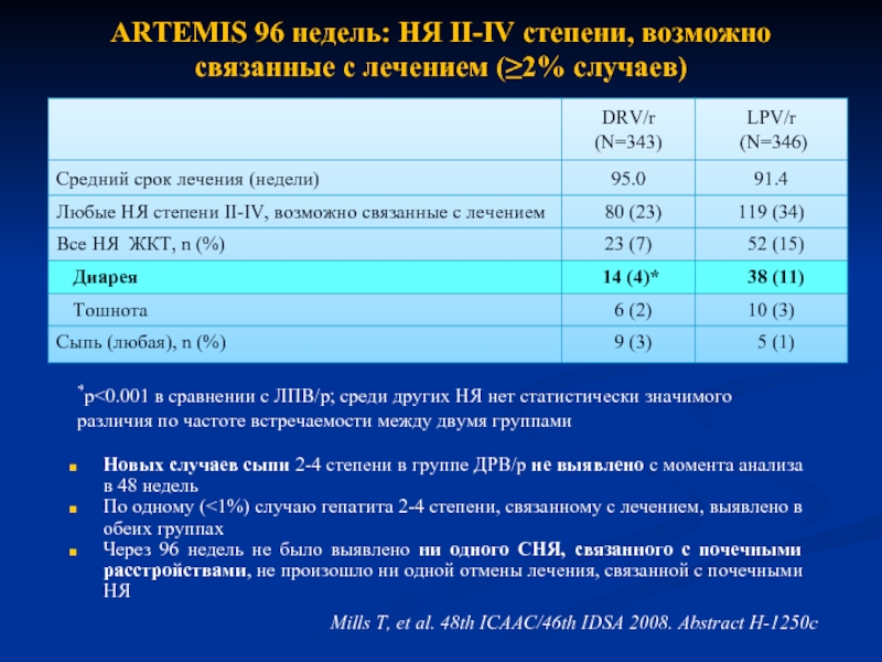 Mills T, et al. 48th ICAAC/46th IDSA 2008. Abstract H-1250c
