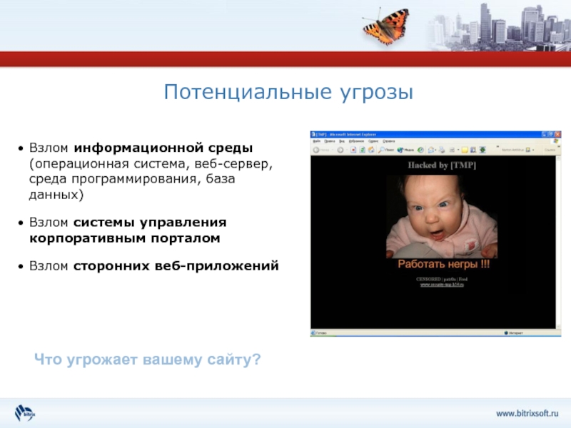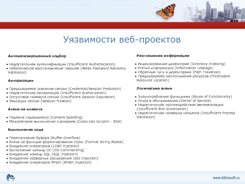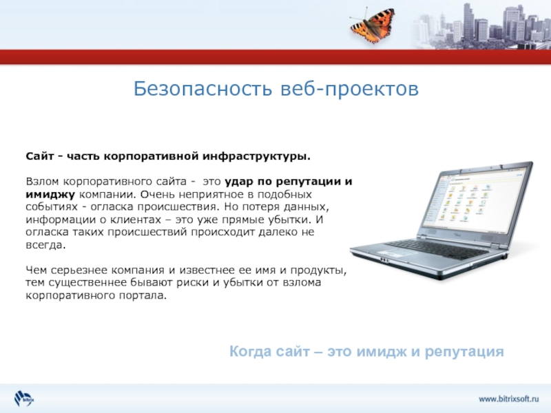 При проектировании программного продукта «Битрикс: Управление сайтом» вопросам безопасности продукта уделялось особое значение на всех этапах разработки и тестирования.