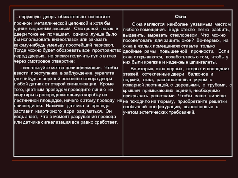 - лучше всего поставить квартиру на охранную сигнализацию, тем более что в случае кражи милиция будет нести материальную ответственность. Но, к сожалению, не у каждого есть для этого деньги;
