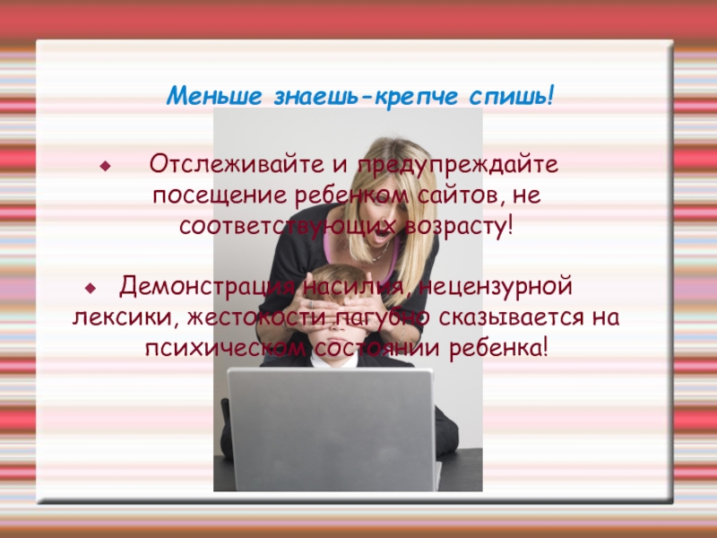 Демонстрация насилия, нецензурной лексики, жестокости пагубно сказывается на психическом состоянии ребенка!