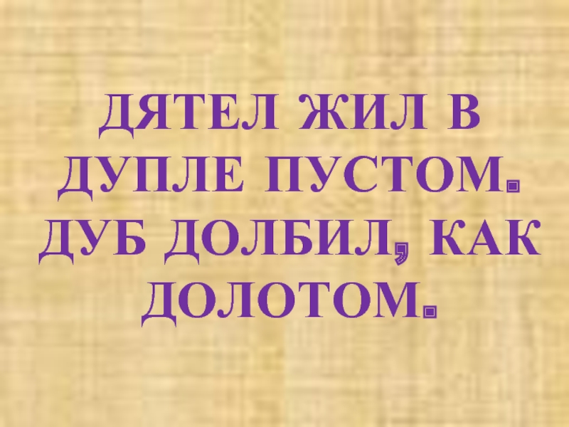 Слайд 2ДЯТЕЛ ЖИЛ В ДУПЛЕ ПУСТОМ. ДУБ ДОЛБИЛ, КАК ДОЛОТОМ.