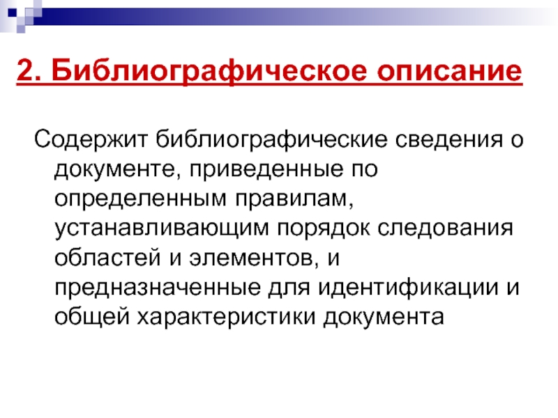 Слайд 9Все сведения о документе делятся на области описания и имеют предписанную