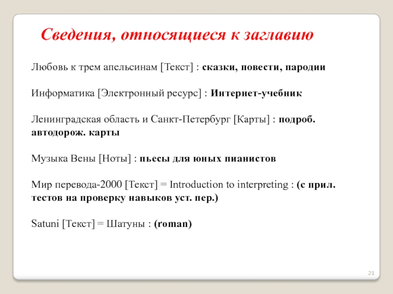 Слайд 4Заголовок записи. Основное заглавие [Общее обозначение материала] : сведения, относящиеся к