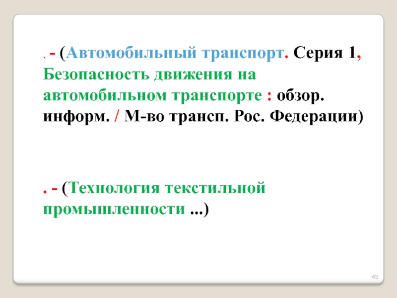 Слайд 45. - (Автомобильный транспорт. Серия 1, Безопасность движения на автомобильном транспорте