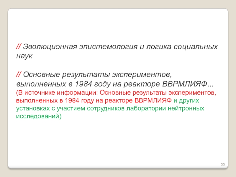 Слайд 55// Эволюционная эпистемология и логика социальных наук