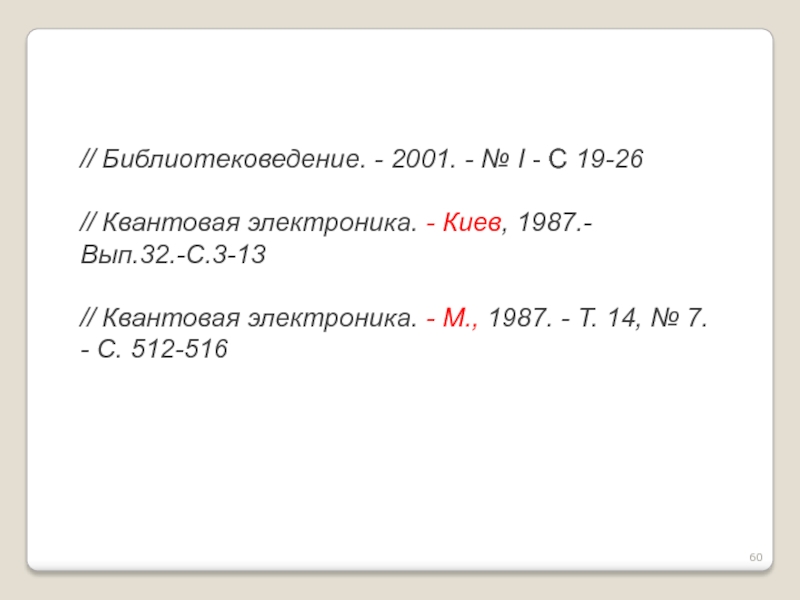 Слайд 60// Библиотековедение. - 2001. - № I - С 19-26