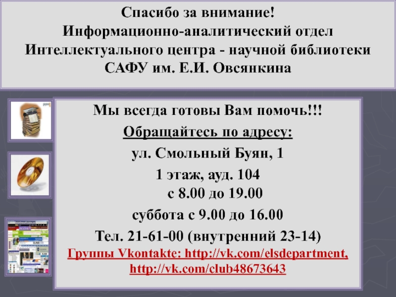 Если не удалось найти и скачать презентацию, Вы можете заказать его на нашем сайте. Мы постараемся найти нужный Вам материал и отправим по электронной почте. Не стесняйтесь обращаться к нам, если у вас возникли вопросы или пожелания: