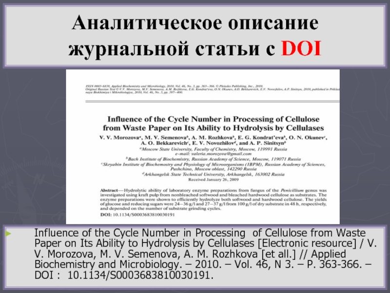 принят в англоязычной научной среде для обмена данными между учеными. Префикс и суффикс DOI в перспективе будут присваиваться редакцией каждой статье.