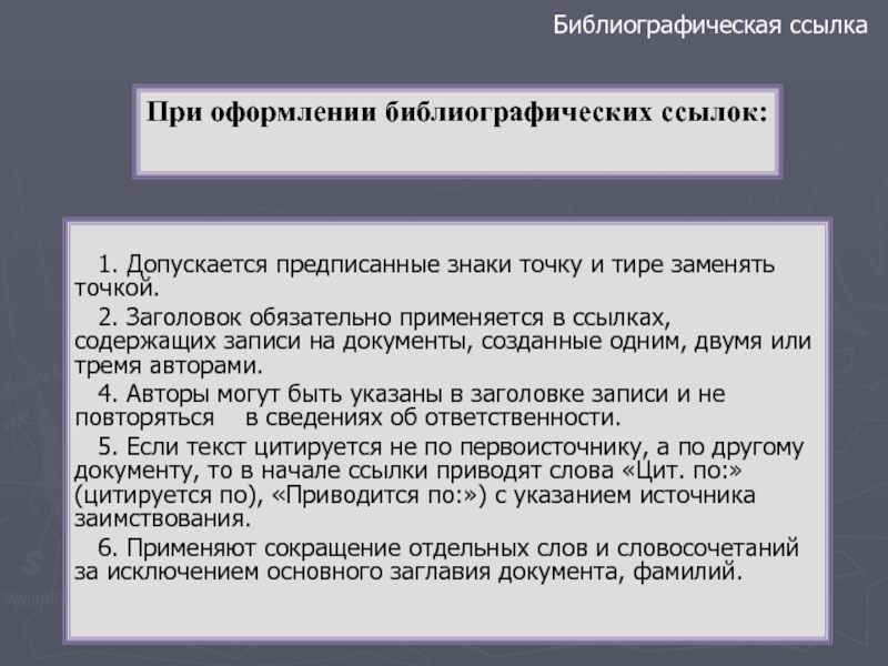 При оформлении библиографических ссылок: