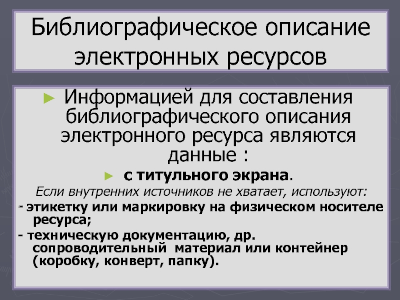 Библиографическое описание электронных ресурсов