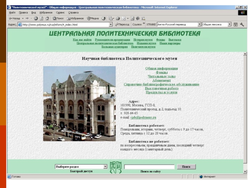 Слайд 25Адрес: 101000, г. Москва, Политехнический проезд, 2 подъезд, д. 10.