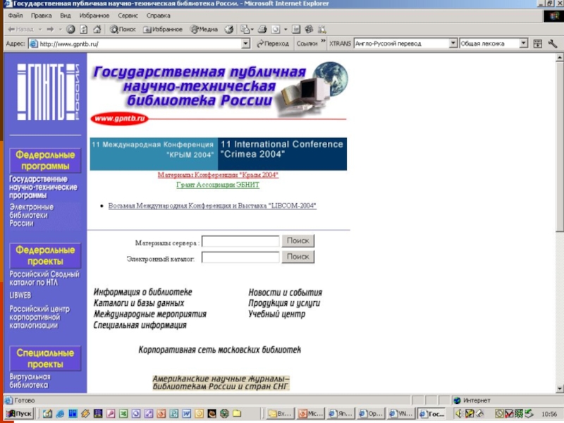 Слайд 10Государственная публичная научно-техническая библиотека России (ГПНТБ России)