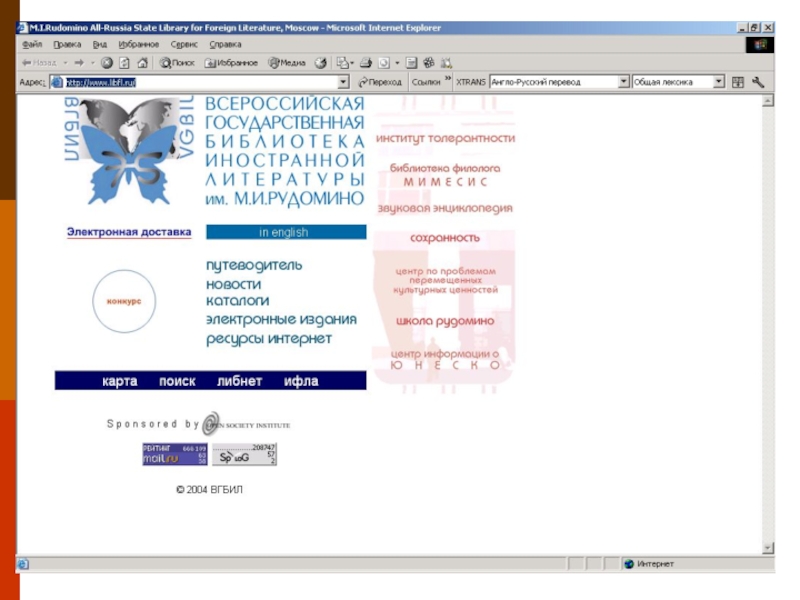 Всероссийская государственная библиотека иностранной литературы им. М.И. Рудомино (ВГБИЛ) http://www.libfl.ru/