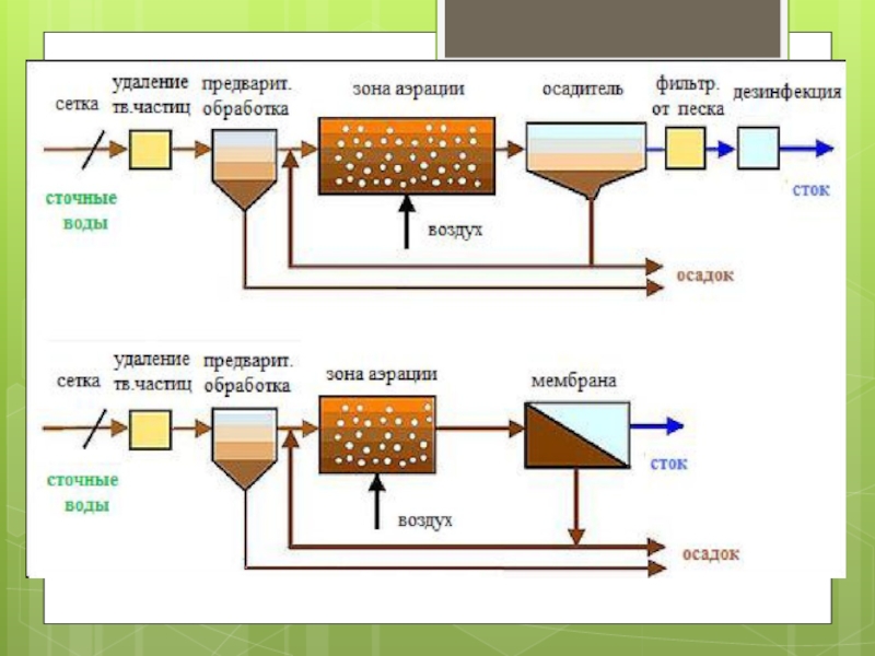 Сооружения биологической очистки условно делят на 2 типа, в которых: