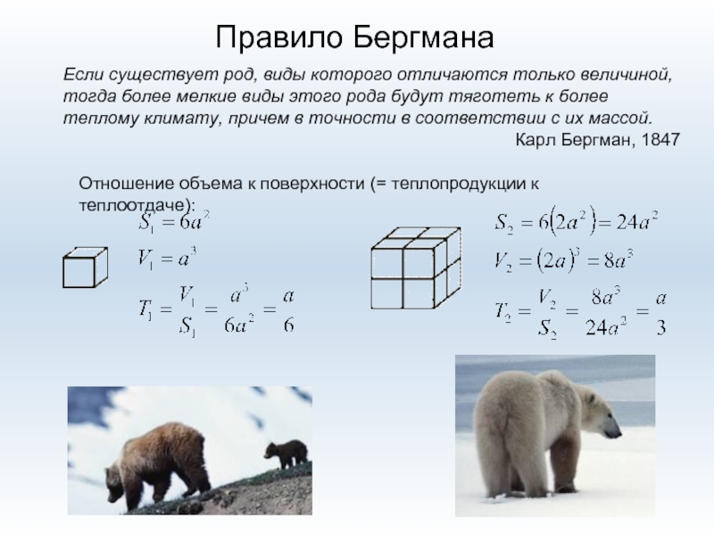 Отношение объема к поверхности (= теплопродукции к теплоотдаче):