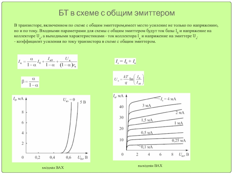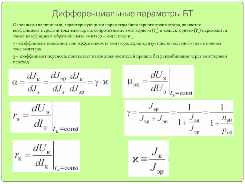 Дифференциальные параметры биполярных транзисторов зависят от режимов их работы.