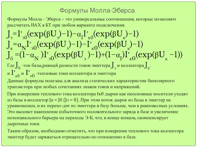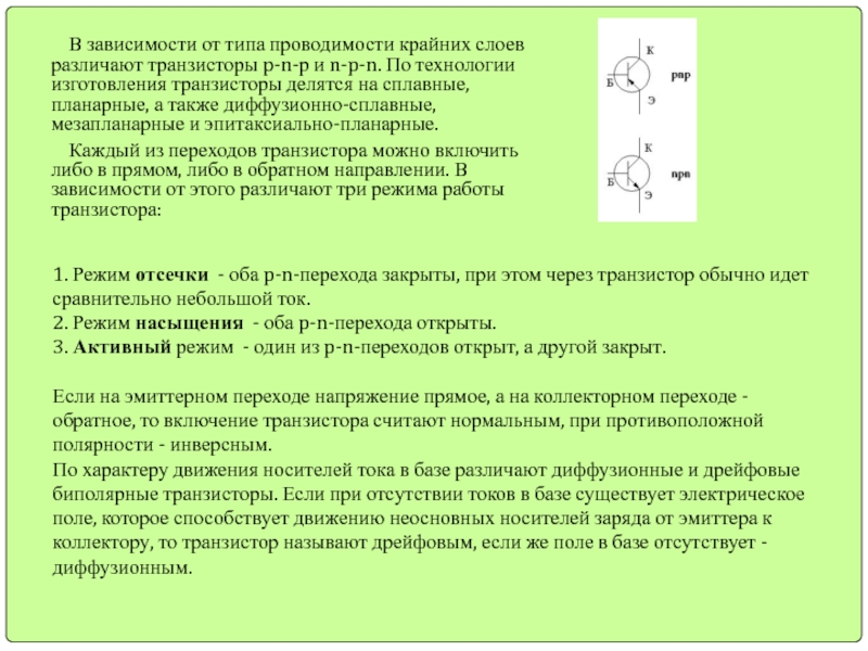 1. Режим отсечки - оба p-n-перехода закрыты, при этом через транзистор обычно идет сравнительно небольшой ток.