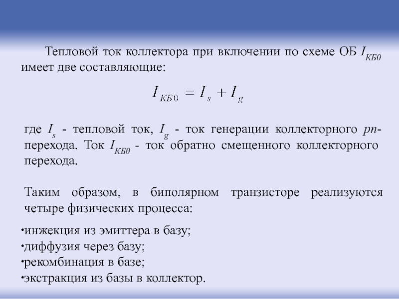 Ток базы IБ транзистора будет состоять из трех компонент, включающих электронный