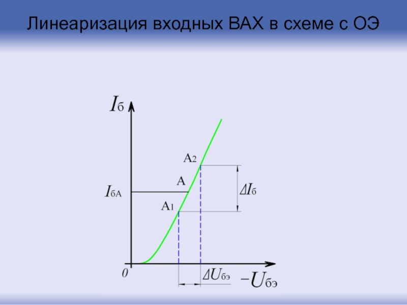Слайд 63Линеаризация входных ВАХ в схеме с ОЭ