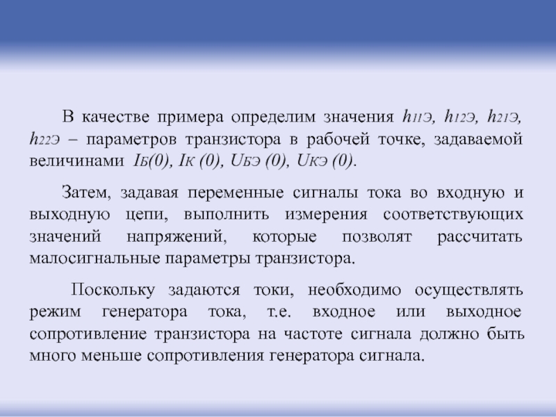 Слайд 91В качестве примера определим значения h11Э, h12Э, h21Э, h22Э – параметров
