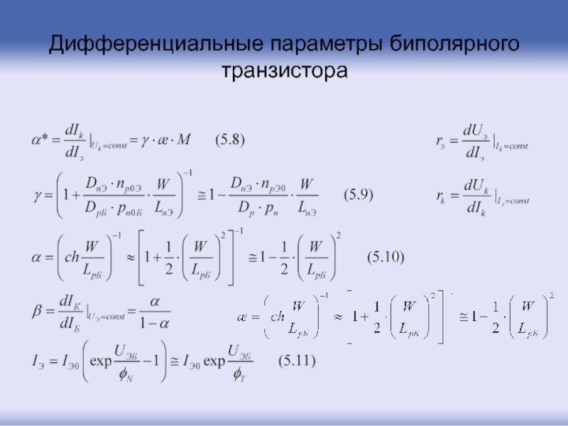 Слайд 65Дифференциальные параметры биполярного транзистора