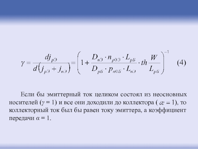 Слайд 34Если бы эмиттерный ток целиком состоял из неосновных носителей (γ =