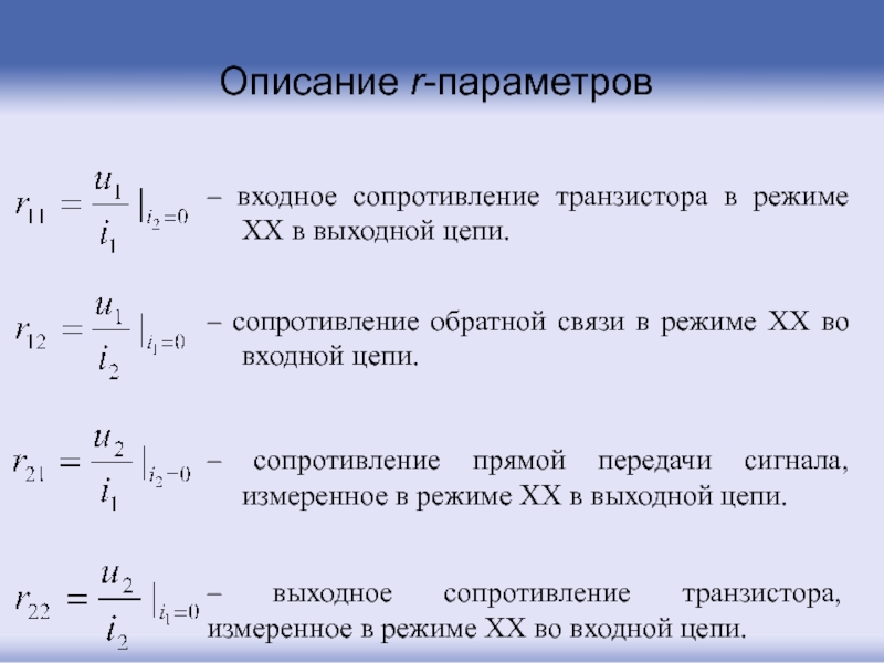 параметры измеряются в режиме ХХ, а g–параметры – в режиме КЗ на входе и выходе транзистора.