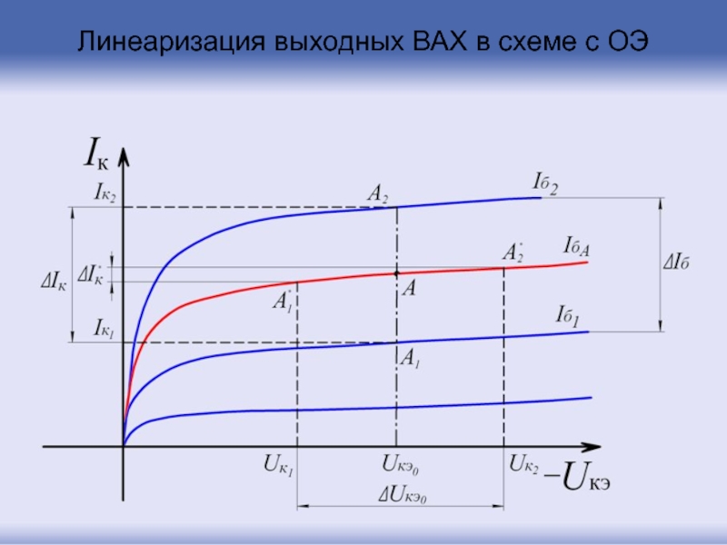 Слайд 64Линеаризация выходных ВАХ в схеме с ОЭ