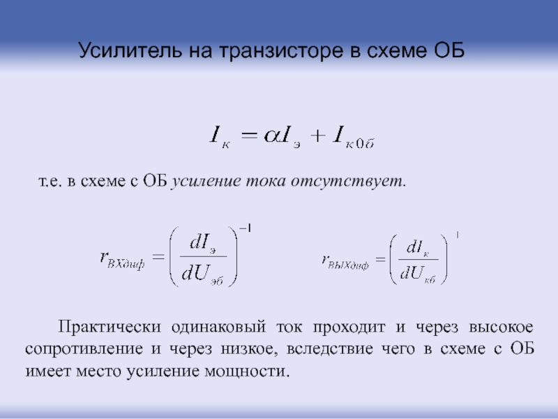 2. Схема с ОБ усиливает напряжение (примерно, как и схема с ОЭ), но не усиливает ток. Схема находит применение в усилителях высоких и сверхвысоких частот.