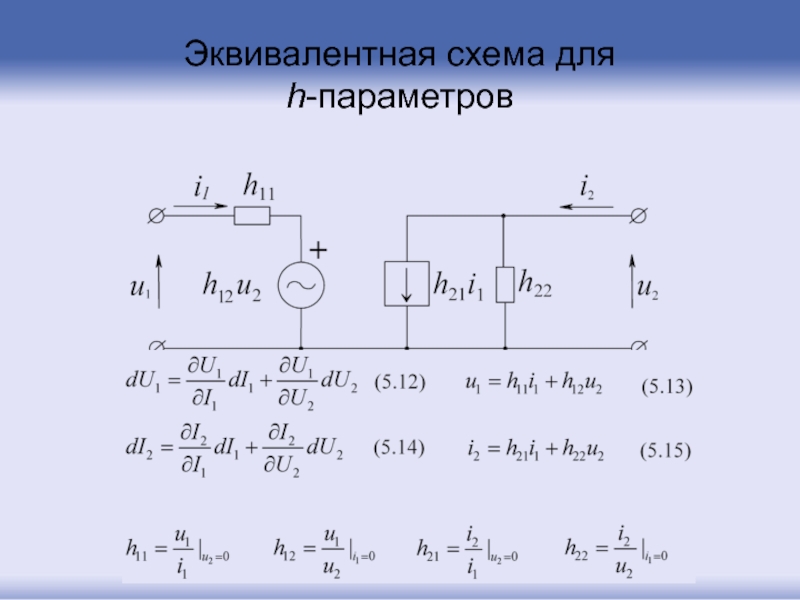 Поэтому для системы h-параметров в качестве входных параметров задаются ток i1 и напряжение u2, а в качестве выходных параметров рассчитываются ток i2 и напряжение u1, U1 = f1(I1, U2), I2 = f2(I1, U2).