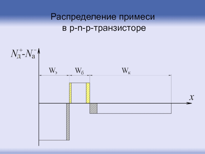Слайд 9Центральную часть транзистора называется базой, левая высоколегированная - эмиттер, правая, низколегированная