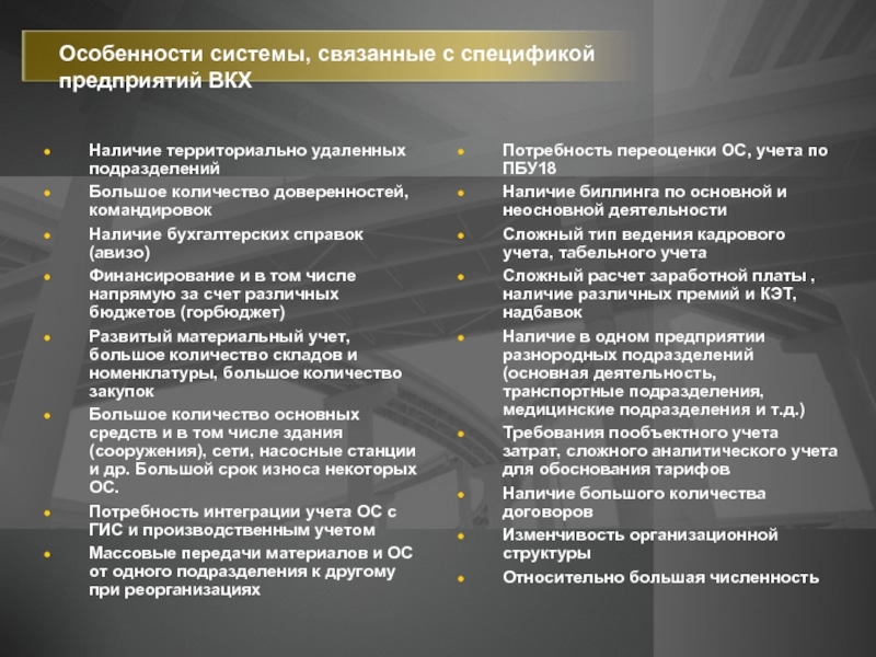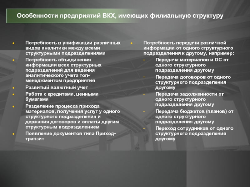 Наличие в одном предприятии разнородных подразделений (основная деятельность, транспортные подразделения, медицинские подразделения и т.д.)