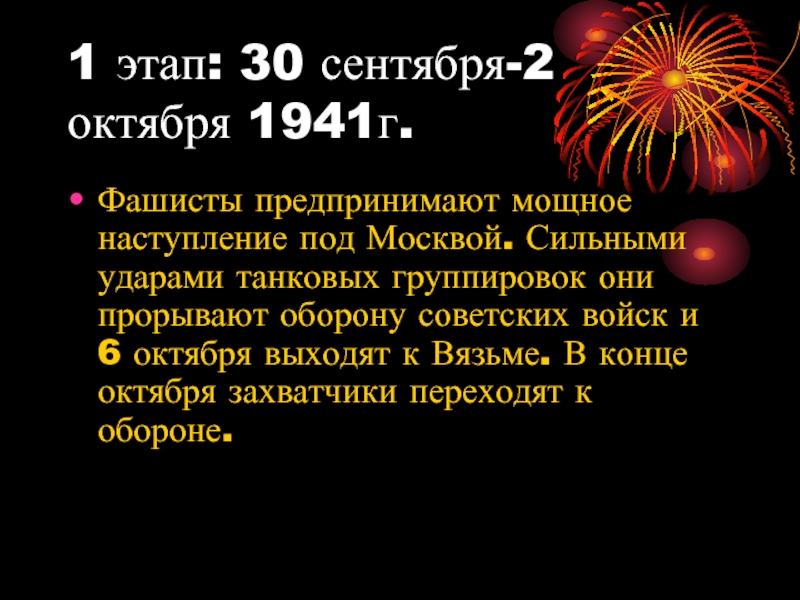 Слайд 21 этап: 30 сентября-2 октября 1941г.