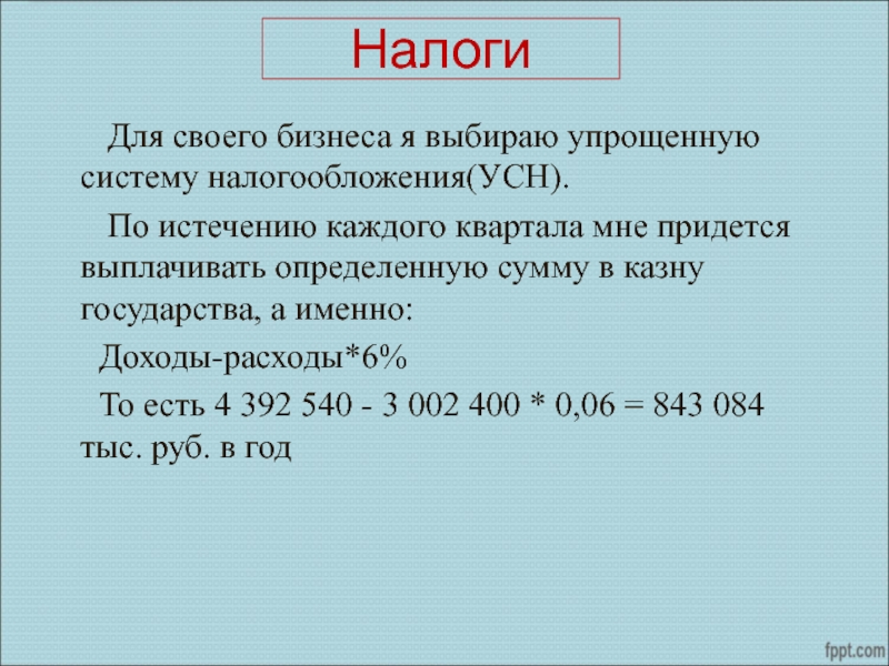 По истечению каждого квартала мне придется выплачивать определенную сумму в казну государства, а именно: