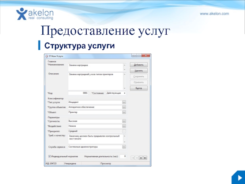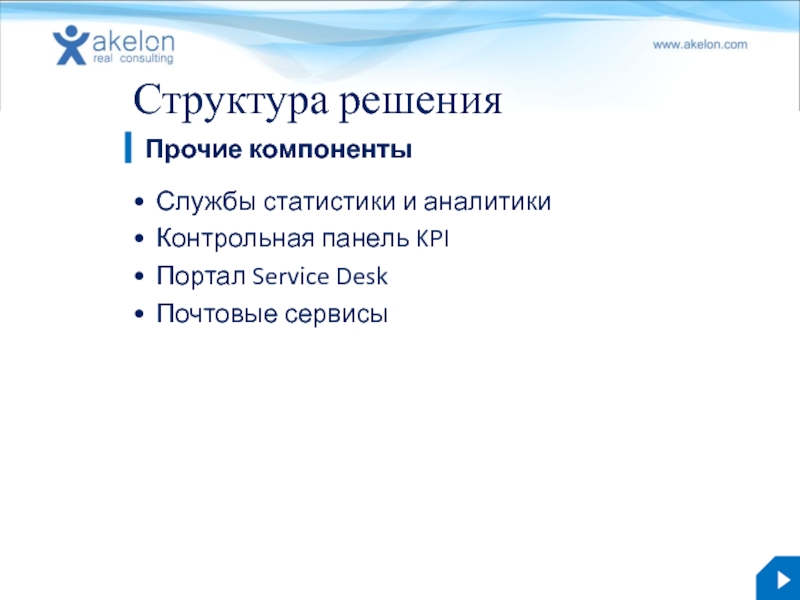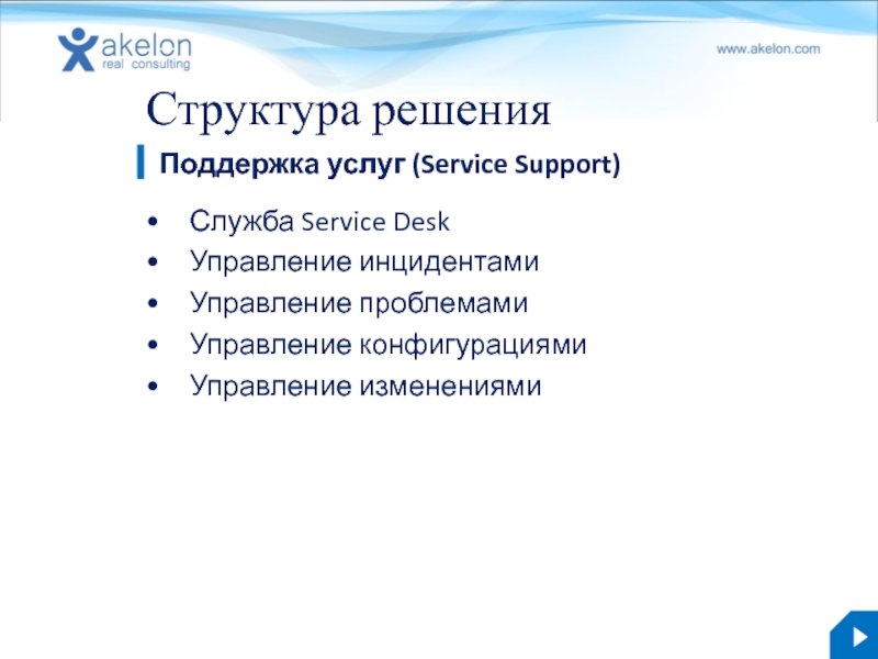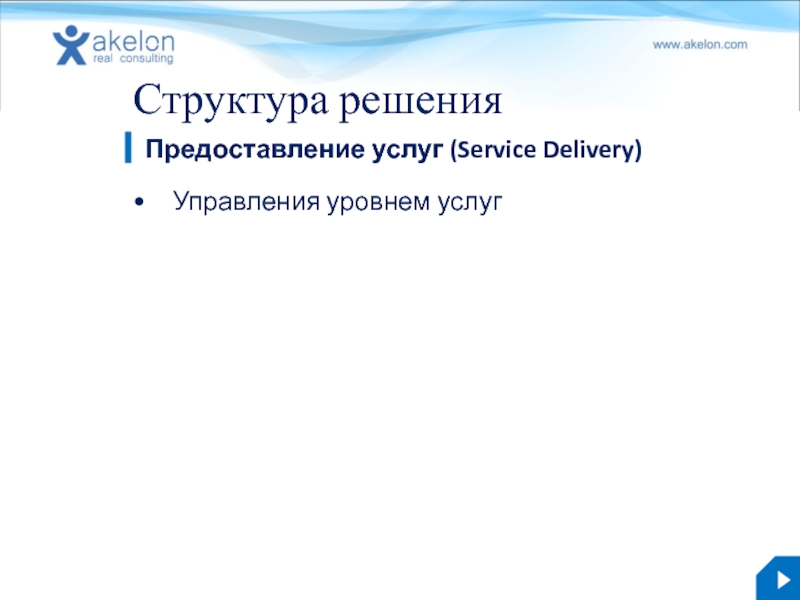 Бизнес-решение Akelon IT.Now 3.0 akelon.com Структура решения Управления уровнем услуг Предоставление услуг (Service Delivery) презентация