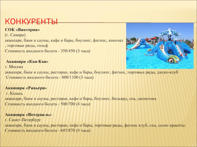 отношению к своим существующим и потенциальным конкурентам (самарский, московские, казанский аквапарки) являются: