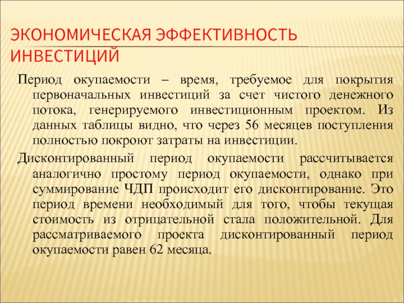 Слайд 18ЭКОНОМИЧЕСКАЯ ЭФФЕКТИВНОСТЬ ИНВЕСТИЦИЙ