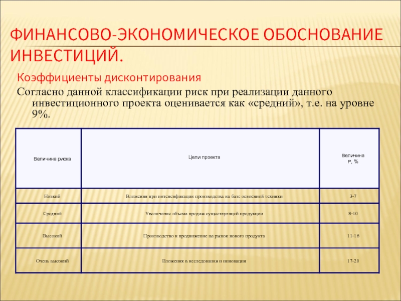 проекта оценивается как «средний», т.е. на уровне 9%.