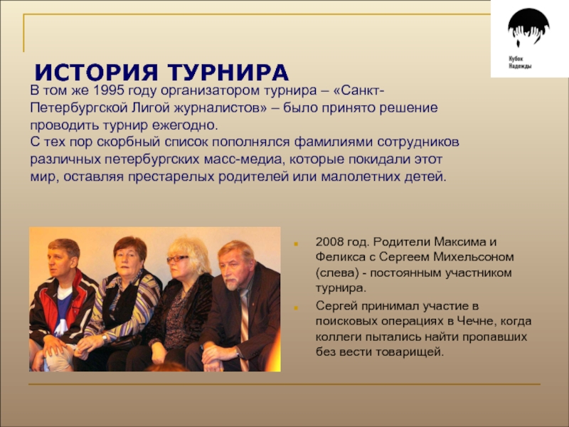 2008 год. Родители Максима и Феликса с Сергеем Михельсоном (слева) - постоянным участником турнира.