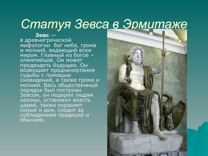 Слайд 20Зевс с рогом изобилия. Скульптура фонтана в Петродворце