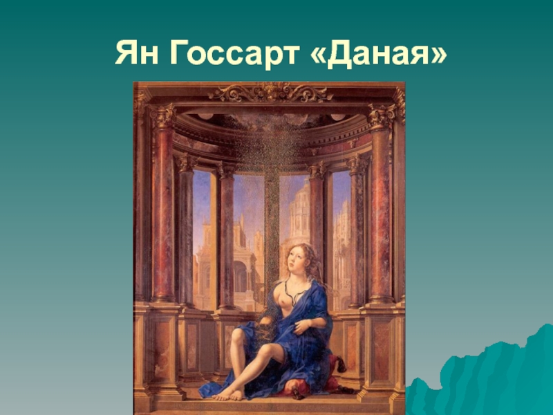 виде золотого дождя к находящейся в заключении женщине. К этому сюжету обращались такие знаменитые художники как Тициан, Корредо,Госсарт, Климт.