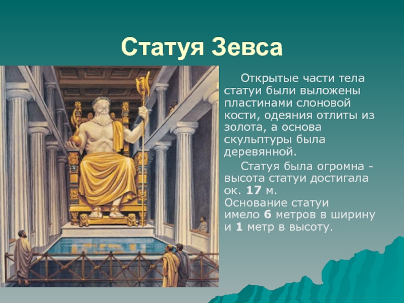 пластинами слоновой кости, одеяния отлиты из золота, а основа скульптуры была деревянной.
