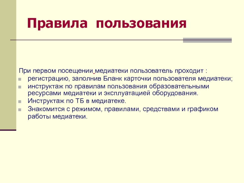 инструктаж по правилам пользования образовательными ресурсами медиатеки и эксплуатацией оборудования.