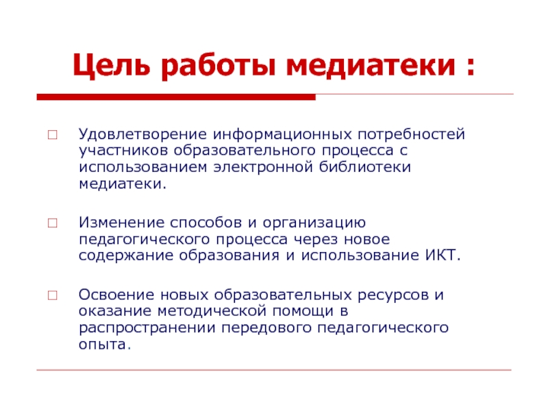 Возможность использования образовательных ресурсов медиатеки для обучения педагогов и учащихся.