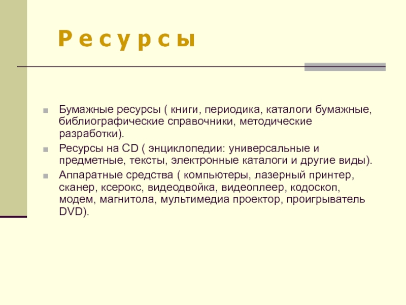 Ресурсы на CD ( энциклопедии: универсальные и предметные, тексты, электронные каталоги и другие виды).