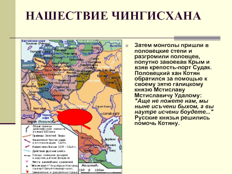 завоевав Крым и взяв крепость-порт Судак. Половецкий хан Котян обратился за помощью к своему зятю галицкому князю Мстиславу Мстиславичу Удалому: