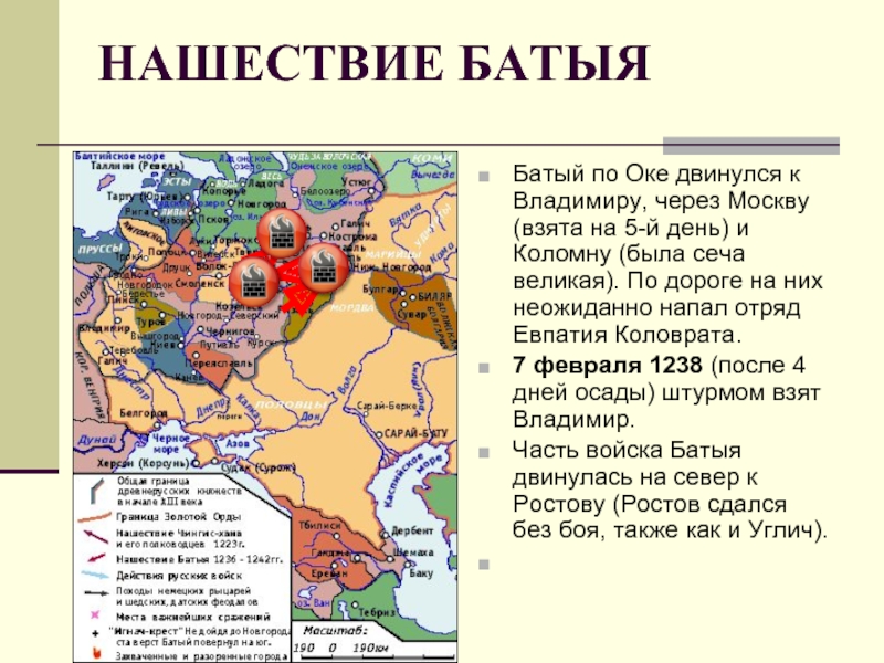 Часть войска Батыя двинулась на север к Ростову (Ростов сдался без боя, также как и Углич).